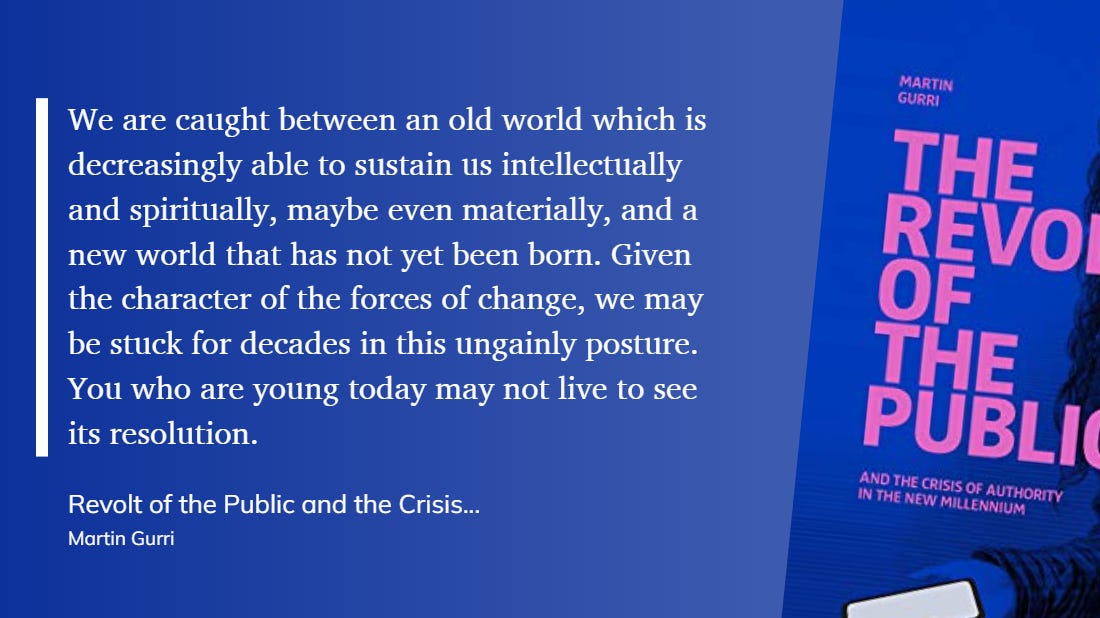 Gurri’s book was written in 2018. Are the changes that have occurred since then our new norm so as to expect the unexpected?